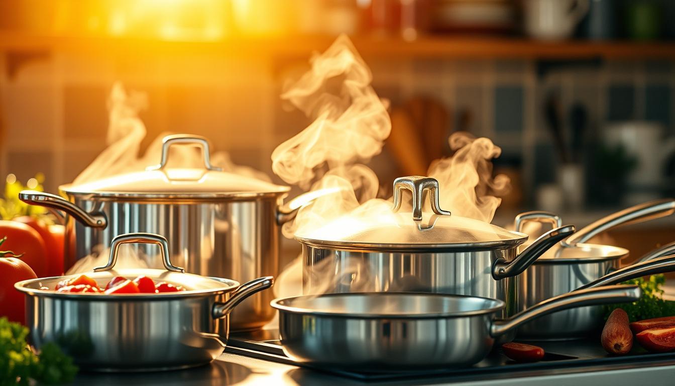 - Para fogões a gás ou elétricos, escolha panelas com bases planas e espessas para melhor distribuição do calor.